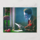 Stunning high quality reproduction of a hand-tinted real photograph French postcard from the 1920s with a romantic letter writer depicted in the expressive and gaudy colours that were so popular at that time.