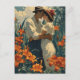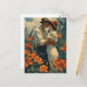 This vintage postcard captures a timeless moment, featuring a couple standing closely, their heads touching, amidst a serene field of delicate lilies. The faded hues evoke a sense of nostalgia, and the soft sunlight highlights the couple's connection in this idyllic setting. The carefully composed scene conveys a romantic and enduring charm.