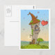 a little wizard in his tower casts his favourite spell ! An colourful postcard showing an wizard-tower with an tiny door and an varanda below the crooky roof.On the varanda you can see an cute little wizard with an blue wizard hat producing big red heart-shaped ballons- which he lets fly into the sky.It looks like the small wizard has been doing this all day because the sky is full of heart-ballons!This cute postcard is perfect to declare your love to somebody! :)