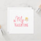 Soft white, finished with decorative pink text accompanied by young cupid. On the back, you can customise with your own personal message. Background colour is customisable.