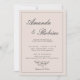 A soft blush pink wedding invitation with romantic floral accents and classic script typography. This design exudes elegance and modern charm, perfect for timeless weddings with a soft colour palette. Fully customisable with your wedding details.