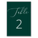 Romantic Modern Deep Emerald Green Script Wedding Table Number