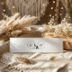 Celebrate your "yes" moment with this modern minimalist proposal scene. Featuring elegant silhouettes and custom monogram initials for a timeless engagement.This design features a high-contrast, jet-black silhouette illustration set against a stark white background, depicting a classic proposal scene with a groom kneeling on one knee before a standing bride. The figures are framed by fine, intersecting geometric circles that house the custom initials "E" and "W" in a formal, flowing calligraphy script. The composition utilizes negative space to create a clean, contemporary aesthetic suitable for formal events.This is a flat printed image with a printed ink effect, not actual raised letterpress or engraved material.