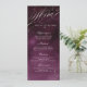 Romantic handwriting calligraphy script on moody deep plum purple watercolor background, elegant and sophisticated, great wedding menu cards for vintage wedding, fall or winter weddings and evening wedding.