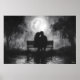 Romantic Moonlit Silhouette on a Park Bench Poster