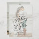 Simple elegant beach tropical summer destination minimalist modern photo overlay wedding invitation with whimsical names script and wedding logo monogram.