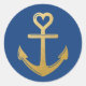 Romantic Nautical Heart Anchor Classic Round Sticker