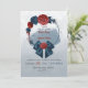 romantic navy blue and burgundy flowers and cute ribbon botanical wreath wedding invitation.