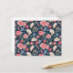 Romantic Navy Blue Floral Garden Pattern Postcard