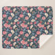 Romantic Navy Blue Floral Garden Pattern Sherpa Blanket
