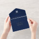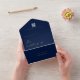 Featuring a navy blue background adorned with opulent gold calligraphy and text, this invitation captures the essence of your romantic celebration. Its thoughtful design folds neatly into an envelope for easy mailing, simplifying the process and reducing your stress.