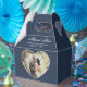 Custom navy blue wedding photo thank you favour box featuring a heart shaped photo frame.