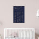 This romantic navy calligraphy alphabetical seating chart poster is perfect for a simple wedding. This sign can be used to organize your guests alphabetically or by table number. The modern classic design features fancy swirls and whimsical flourishes with gorgeous elegant hand lettered faux champagne gold foil typography. This wedding poster includes enough room for up to about 120 guests. Make room for more (or less) guests by clicking the "customize" button and decrease or increase the size of the font. In addition to the placement of each guest, personalize this sign with the names of the bride and groom and the wedding date.