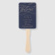 This romantic navy calligraphy wedding program fan is perfect for a simple wedding. The modern classic design features fancy swirls and whimsical flourishes with gorgeous elegant hand lettered faux champagne gold foil typography. Include the name of the bride and groom, the wedding date and location, thank you message, order of service, and bridal party. Order your programs assembled or non-assembled.