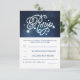 modern starry wedding reply cards with glowing in the stars RSVP typography with cute swirls on the navy background.