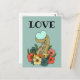 Say you love someone in a unique way. Whimsical postcard featuring a hand drawn octopus tentacle holding a heart shaped bubble. Ah, love.