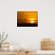 Romantic orange sunset with flying cranes poster
