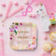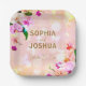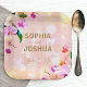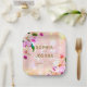 Beautiful elegant floral wedding paper plate design featuring orchid bouquet on a peach pink background. The text is fully customisable.