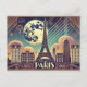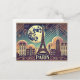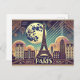 Here’s an enhanced vintage travel postcard featuring Paris with the Eiffel Tower in chic Art Deco styling, now set against a romantic moonlit night. 🇫🇷🗼🌙 The background includes soft pastel hues of deep blue, purple, and gold, with glowing city lights. The bold Art Deco-inspired typography reads "Romantic Paris", and the design now includes stylish borders, glamourous golden accents, and swirling patterns