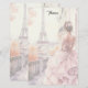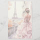 Lady standing near a window looking at the Eiffel Tower. Customizable name.