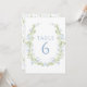 Elegantly timeless, these wedding table numbers feature delicate watercolor pastel blue flowers and a whimsical greenery wreath.