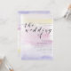 Artistic Pastel Watercolor Typography Wedding Invitation, in romantic shades of colors of purple, blush pink, and pale yellow, for you to customize with your event specifics.