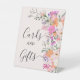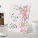 Romantic pastel wild flowers spring summer bridal shower cards and gifts tabletop sign with pretty wild country flowers in pink, peach, purple, lavender, green leaves and more, with a brushed script typography on an elegant editable soft pastel pink background.