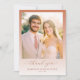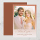 This wedding thank you card features a warm, romantic design with a soft peach and cream colour palette. The layout includes a blurred photo placeholder at the top, creating a serene sunset ambiance, while the bottom section offers space for elegant cursive "thank you" text and customisable names in a simple serif font. The minimalist approach emphasizes clean lines and ample negative space, perfect for conveying gratitude in a sophisticated manner. Ideal for newlyweds looking to express their appreciation with a timeless and inviting tone.