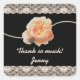 Romantic Peach Rose with Faux Lace on Black Square Sticker