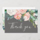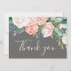 This romantic peony flowers grey thank you card is perfect for an elegant wedding. The floral design features blush pink, peach and white cascading watercolor flowers on a grey background. Personalise the card with your thank you message and names.