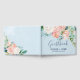 This romantic peony flowers light blue wedding guest book is perfect for an elegant wedding. The floral design features blush pink, peach and white cascading watercolor flowers on a light blue background. Personalise the front cover with the names of the bride and groom and the wedding date.