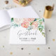 This romantic peony flowers wedding guest book is perfect for an elegant wedding. The floral design features blush pink, peach and white cascading watercolor flowers. Personalise the front cover with the names of the bride and groom and the wedding date.