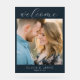 This elegant wedding sign features a warm and inviting design, perfect for celebrating your special day. The layout includes a prominent photo area surrounded by soft, romantic colors that create an intimate and joyful atmosphere. The typography is stylish and modern, adding to the sophisticated feel of the piece. Ideal for displaying at your reception or ceremony entrance, this sign captures the essence of love and celebration, making it a beautiful addition to any wedding decor.