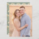This wedding invitation features a warm, romantic photo design with soft golden hues and a serene outdoor setting. The layout is simple yet elegant, allowing the focus to remain on the intimate moment captured in the image. With its gentle color palette and cozy atmosphere, this invitation exudes love and tenderness, perfect for couples looking to celebrate their special day with an understated charm. It’s ideal for those who want to convey a heartfelt and personal touch in their wedding stationery.