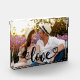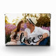 Create your own unique and stylish photo block. The photo template is set up ready for you to add your own picture which will automatically fill the entire front face. The hand lettered text overlay simply reads "love" in beautiful calligraphy with love hearts at each end. You can customise this frameless, versatile design with any photo. We chose a romantic photo as a lovely gift idea for couples, such as Valentines, engagements, new home or wedding anniversary.