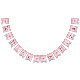 A romantic Valentines Day bunting to welcome guests and add unexpected fun to your Valentine's Day entertaining. Whether you're entertaining just that one special someone or a group this piece is designed with flags with a dreamy pink and white heart background. The words Be Mine is spelled out on individual flags in big colourful crimson font. The words are separated with flags that are designed with romantic intertwined hearts with two shades of complimentary pink. Matching party accessories are available.