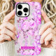 This phone case showcases a stunning pink and lavender floral arrangement on a soft grey background. Featuring a bold magenta name label for personalisation, this design blends elegance and charm with a modern romantic feel. Ideal for those who love timeless floral patterns and custom accessories.