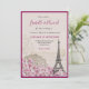Romantic Pink Blossoms Paris Eiffel Tower Wedding Invitation