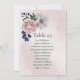 Beautiful botanical seating chart card featuring romantic pink, white and navy blue flowers with green leaves.