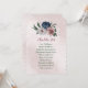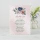Beautiful botanical seating chart card featuring romantic pink, white and navy blue flowers with green leaves.
