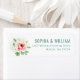 This return address label features a minimalist design with a soft pink rose and delicate green leaves, creating an elegant botanical aesthetic. The pastel color palette of blush pink, vibrant green, and crisp white evokes a sense of tranquility and sophistication. The clean layout combines modern typography with classic floral imagery, making it perfect for formal occasions. Its refined style and ample negative space ensure clarity and visual appeal, ideal for adding a touch of grace to your correspondence.