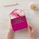 This all in one wedding invitation card is special. You get your invitation card and the RSVP card all in one. You can customise the romantic and elegant wedding invitation card with your Intro, names, occasion, date, adress, rsvp, meals and other background colours to your preferations. Even the image is changeable. It shows a harmonious blend of pink and burgundy tones and it has fitting white and burgundy typography. It is a marble swirl pattern in pink, white, burgundy hues. You can elegant seal and send this trifolded budget wedding invitation. Send the tear off RSVP Postcard back to the sender. Make this special design yours and feel like the prince and princess on your future wedding. Hobinishop