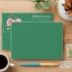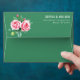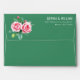This elegant wedding envelope features a classic design with two large pink roses and green foliage on the left side, creating a romantic and natural motif. The right side showcases clean, centred white text in a modern sans-serif font, providing space for customisable names and addresses. Set against a deep green background, the colour palette of soft pinks and vibrant greens enhances the sophisticated and timeless aesthetic. Perfect for formal occasions, this design exudes grace and refinement, making it an ideal choice for celebrating love and commitment.