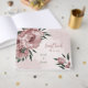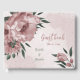 Unique wedding guest book featuring romantic pink flowers and green leaves.