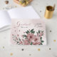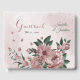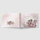 Unique wedding guest book featuring romantic pink flowers and green leaves.