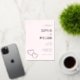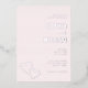 This wedding invitation features a soft pink background with a minimalist and modern design, creating an elegant and romantic atmosphere. The layout is centered with ample white space, enhancing readability and focus on the main content. Delicate silver or light gray typography complements the pale pink hue, while two outlined heart shapes add a subtle romantic motif at the bottom left corner. The customizable text fields allow for personalization of names, dates, and locations, making it perfect for formal occasions. The overall mood is serene and sophisticated, ideal for celebrating a special moment in style.