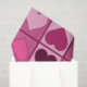 A pattern based on simple graphical hearts horizontally and vertically divided by solid coloured lines. Each heart on its own square. The hearts, square backgrounds and lines all vary in colours spanning from light pink to burgund. Sweet and romantic, suitable on Valentines or just to show off some romance at any time! There is also a version with much smaller hearts.