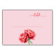 This wedding place card features a minimalist design with a soft pink background, creating an elegant and calming atmosphere. The focal point is two detailed peonies in vibrant shades of pink and coral, adding a touch of romanticism to the layout. A simple red line above the flowers balances the composition, while the cursive "table" text at the top adds sophistication and invites customisation. Perfect for weddings or formal events, this card combines modern minimalism with delicate floral beauty, evoking warmth and celebration.