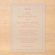 This wedding invitation features a classic and refined rectangular layout with a soft pink background, framed by a subtle double border. The design showcases elegant typography, including bold serif fonts for the names and cursive script for the word "and," creating a sophisticated look. With its minimalistic monogram at the top and clean lines throughout, this invitation exudes warmth and celebration, perfect for a romantic and formal occasion. The cohesive color palette of various pinks adds to the inviting and joyful mood, making it ideal for couples seeking an understated yet stylish wedding invitation.
