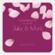 Add a touch of romance to your celebration with these Romantic Pink Petals Square Stickers. Featuring delicate blush florals on a soft mauve background, these elegant stickers are perfect for sealing envelopes, favour bags, gift boxes, or adding a personalised detail to your wedding décor.